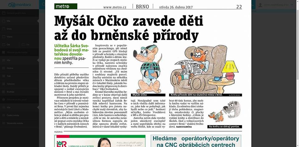 Napsala dnes jedna skvělá paní o projektu Myšák Očko.