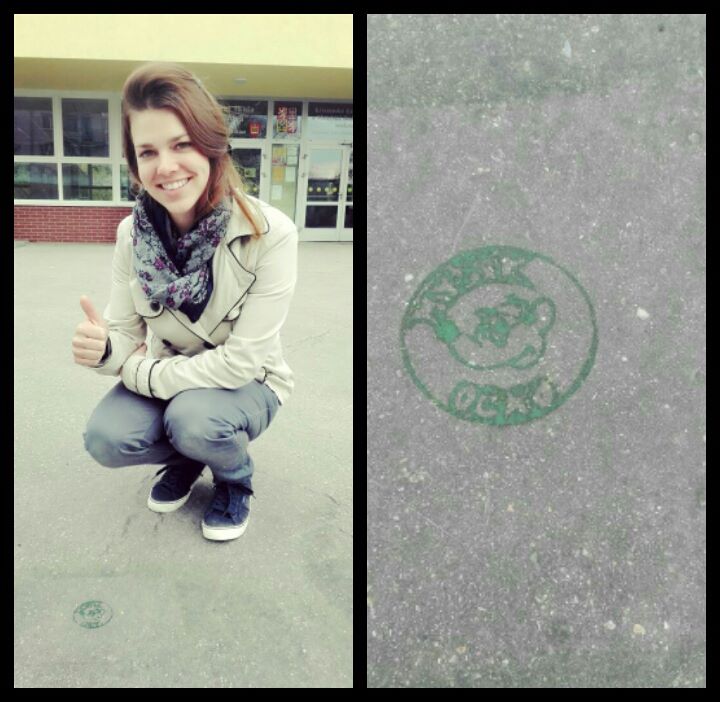 Fotka autorky u nové značky, kterou myšák Očko umístil u ZŠ Masarova.