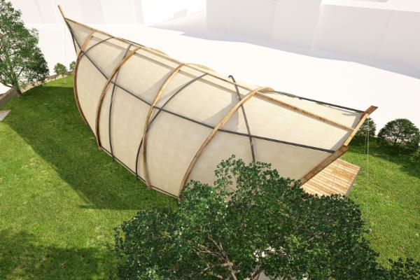 Loď, opakovaně sestavitelné zastřešené pódium, navrhl architekt scénograf Filip Albrecht na základě originálního nápadu Filipa Humla, herce Divadla DRAK. Filip se inspiroval cestami po Skotsku, kde jsou vysloužilé lodi vytaženy na břeh, otočeny dnem vzhůru a upraveny, aby se daly dále využívat. Ať už jako obydlí, loděnice, či prosté přístřešky. To ho dovedlo k nápadu vytvořit rozebíratelnou a tím mobilní stage ve tvaru lodi, která symbolicky nabere pasažéry – umělce a spojí je myšlenkou společné cesty na jedné palubě, kdy každý ke zdárné plavbě přispěje svým umem. Loď vytvoří klenbu, která je ideálním prostorem pro multižánrovou produkci.