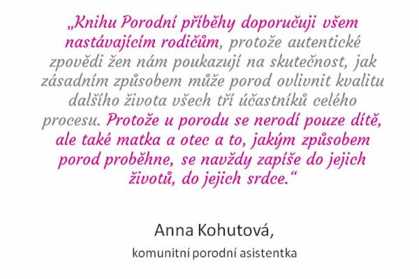 Předmluvu napsala právnička hájící zájmy rodiček Věra Jedličková, návod jak se připravit na porod poskytla PA Bětka Samková a zajímavou porodní statistiku o počtech zákroků jako je nástřih nebo císařský řez v ČR a západní Evropě pak biostatistička Markéta Pavlíková.