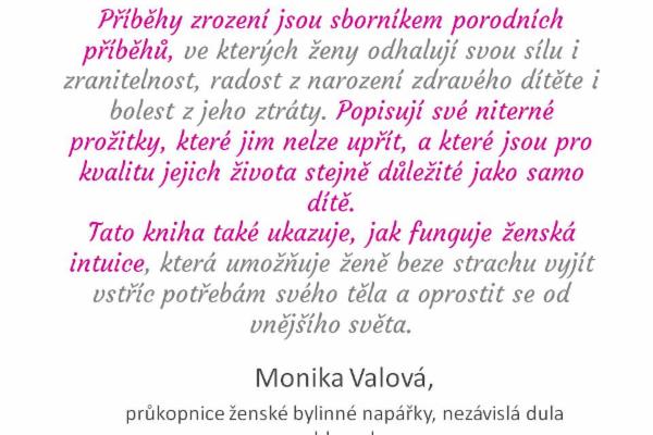 Krásný den, je mi potěšením oznámit, že kniha Příběhy zrození se konečně narodila. Dávala si na čas, je hodně po termínu, ale po všech svých porodních komplikacích je konečně doma. Ráda by se co nejdříve vydala k vám, brání jí v tom dvě poslední překážky: 1. Kdo jste zvolili zaslání poštou - knihy…