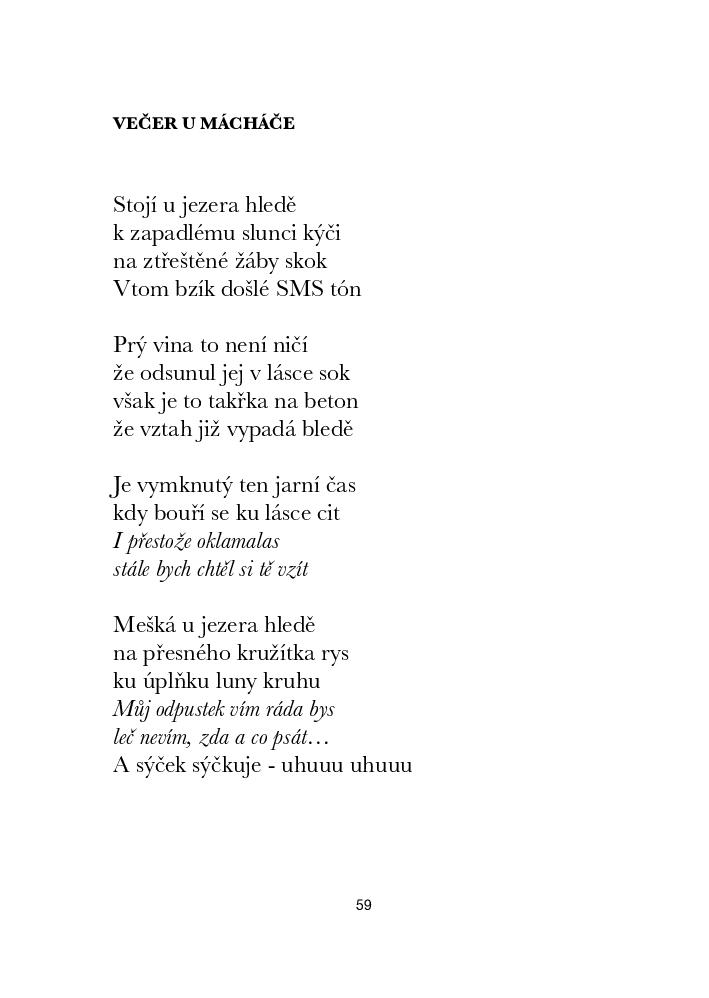 K vydání aktuální sbírky mě ponoukají výzvy mých čtenářů na FB a odezvy publika na mých vystoupeních hudebních, neboť jsou mnohé moje verše zhudebněny a jiné také pro oživení programu s úspěchem předčítány. Povzbudila mě také ocenění v různých literárních soutěžích, do kterých jsem svůj výběr posílal v posledních dvou letech. Rád bych vás prostřednictvím této sbírky pozval do krajiny své poetiky, v níž nechybí také špetka satiry, ironie, sebeironie… kde je na osnovu převážně vázaných veršů ovšem natažena i nota lyrická, důvěrná, transcendentní...