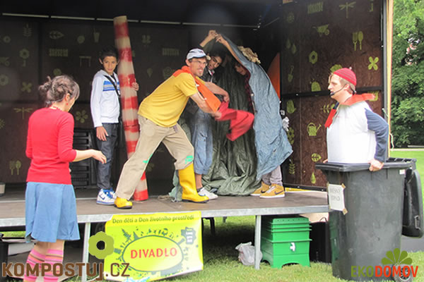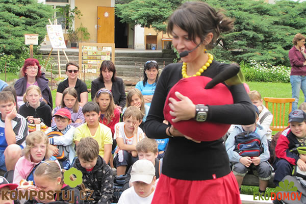 Cena nezahrnuje náklady na dopravu, může být fakturována nebo na příspěvek vystavíme darovací smlouvu. Program můžete využít sami, nebo jej můžete věnovat třetí osobě. Program je pro osoby od 4 let a lze jej uzpůsobit různým věkovým kategoriím. V interaktivním divadelním představení jádřinec Rubín v doprovodu jednoho z diváků, zkušeného zahradníka Hrušky a popeláře Kontíka podniká oddyseovskou cestu domů. Na své pouti se ve vzpomínkách vrací do dětství, navštěvuje skládku i spalovnu odpadů, aby se nakonec odvážil skočit do kompostéru, nechal se rozložit půdními organismy a v podobě kompostu se vrátil na rodnou zahradu. Představení lze realizovat: a) na mobilním divadelním pódiu o.s. Ekodomov na zahradě nebo dvoře vaší školy b) v tělocvičně vaší školy nebo jiném interiéru c) na zahradě Ekocentra Šárynka o.s. Ekodomov (V Podbabě 29b, Praha 6)