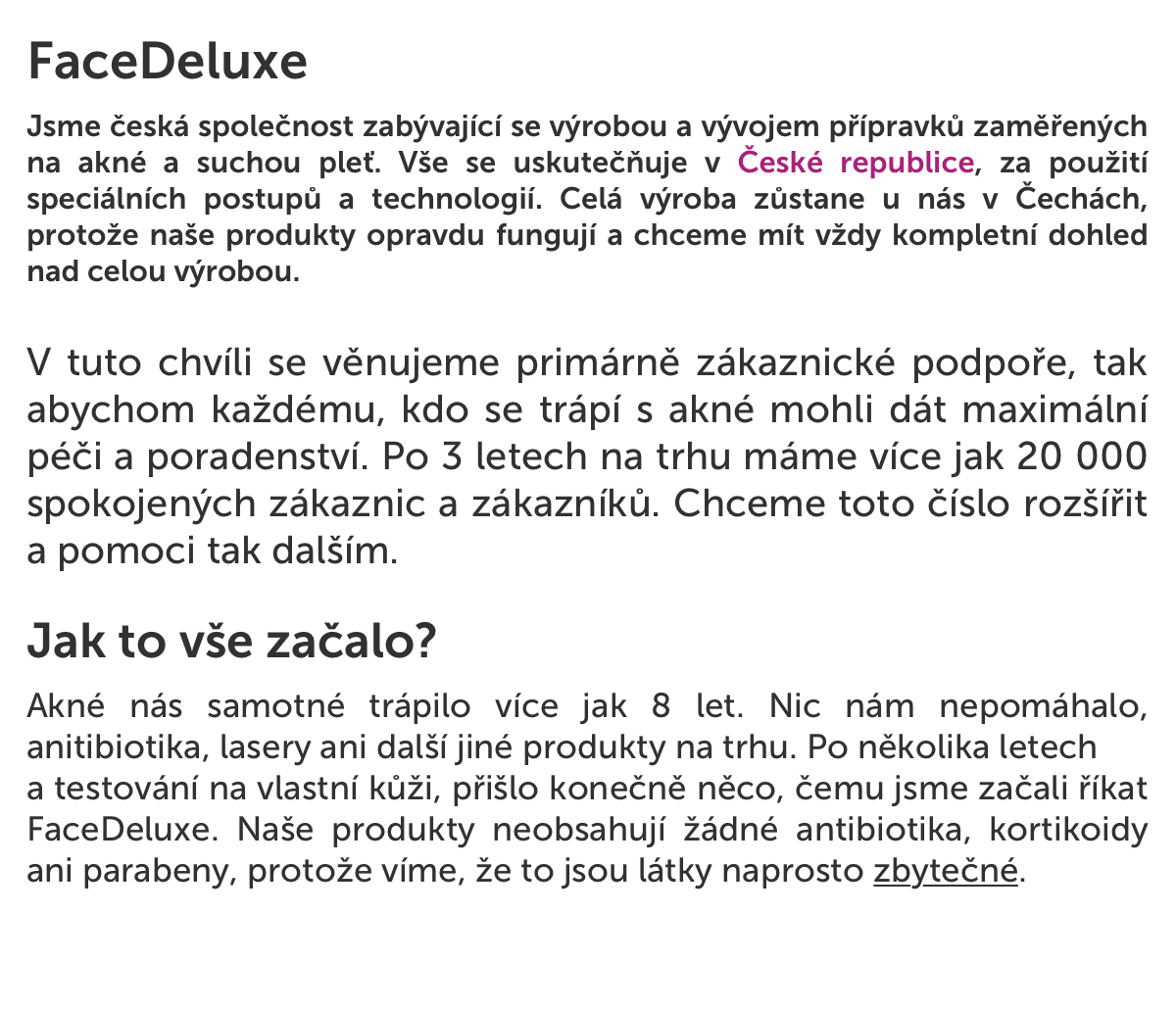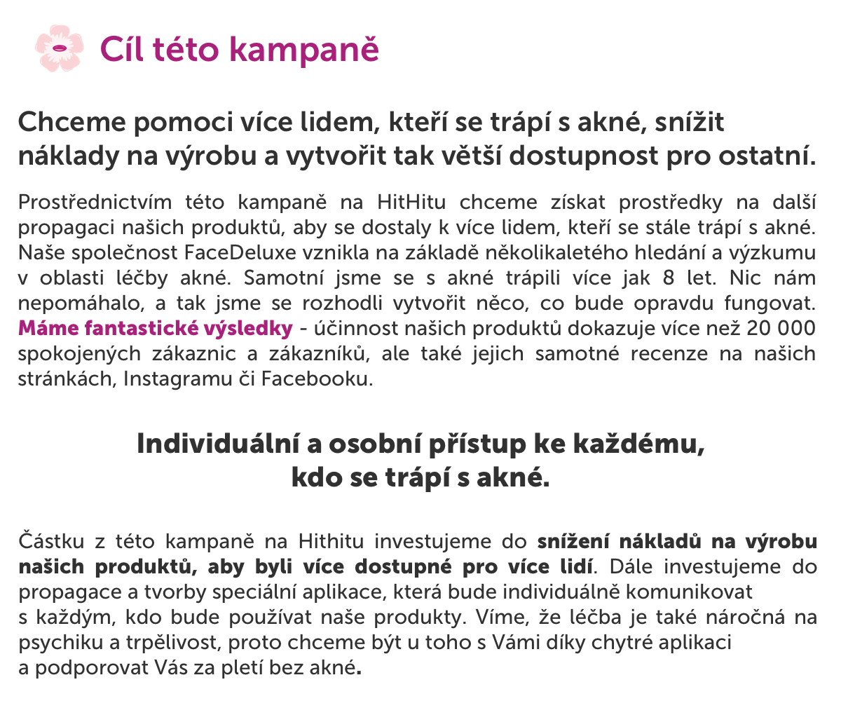 Vyrábíme produkty na léčbu akné. Už 3 roky pomáháme vracet ztracené sebevědomí a především, úspěšně léčit akné. Podpořte nás a pomůžete nám tak s další propagací a předělání postupů ve výrobě, aby se naše produkty dostaly k dalším, kdo se trápí s akné!