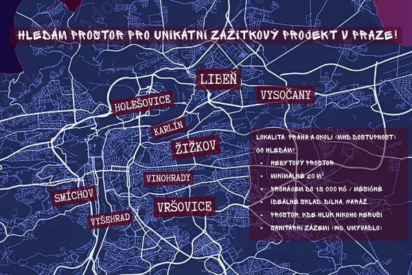 Pro svůj projekt reRage – první pražskou rage room hledám vhodné místo, kde se dá legálně, hlasitě a s úlevou rozbíjet věci. Tady jsou mé požadavky: Pronájem do 15 000 Kč / měsíc Minimální rozloha 20 m² Nebytový prostor – ideálně sklad, dílna, bývalá garáž, provozovna apod. Dobrá odhlučněnost neb…