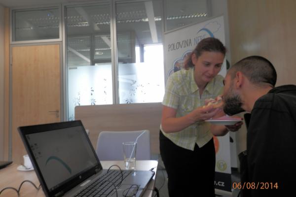 Za dobrovolnou obecně prospěšnou společností Polovina nebe, o.p.s., stojí především Radka, Ondřej, Honza, a Daniela, která byla u jejího zrodu. Učíme osoby s těžkým postižením motoriky horních končetin ovládat počítač a psát text pouze hlasem (nabízíme k vyzkoušení). Frekventantům školení se lépe daří umístit na pracovním trhu a osamostatnit se, tedy zajistit si díky internetu zcela běžné věci. Díky individuálnímu přístupu našich lektorů, jako je Patrik, prošlo za 4 roky školením přes 130 klientů, kteří ovládají počítač hlasem a pro 58 z nich jsme našli pracovní uplatnění.