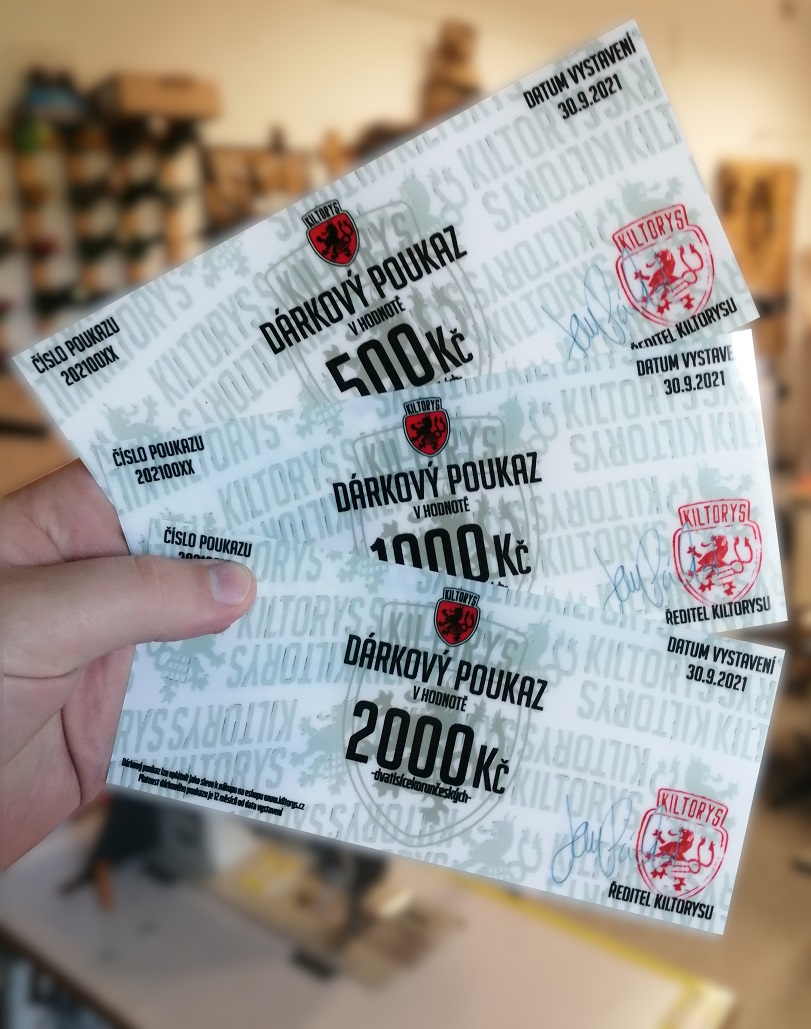 Dárkový cetifikát (voucher, poukaz) na odběr jednoho kusu KILTORYSu dle vlastního výběru. Ideální jako dárek, a nezapomeňte, Vánoce se blíží!