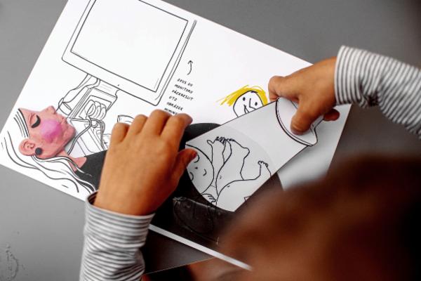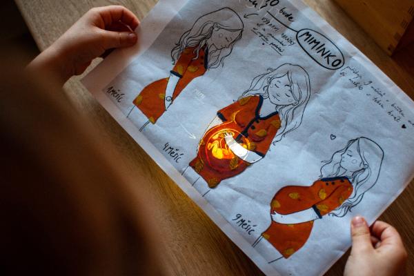 Jsem ilustrátorka a máma tří dětí. Když jsem byla ve druhém těhotenství na kontrole ve 12. týdnu, vzala jsem s sebou dceru Klárku. Tam poprvé viděla skutečný ultrazvuk a svou sestřičku Adélku. Ale nevěděla vůbec nic víc. Jak se to miminko do břicha dostalo? Jak to, že se na něj můžeme takhle dívat? Jak dlouho tam bude? Proč se musí chodit k doktorovi na kontroly? Měla spoustu otázek.