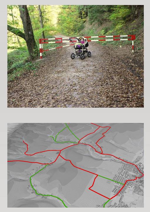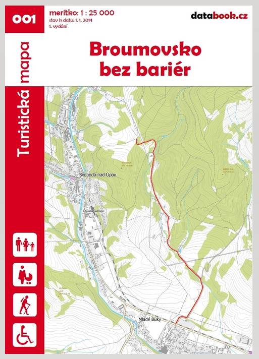 Turistická mapa pro tělesně postižené, pro lidi s pohybovým omezením a pro rodiny s malými dětmi.