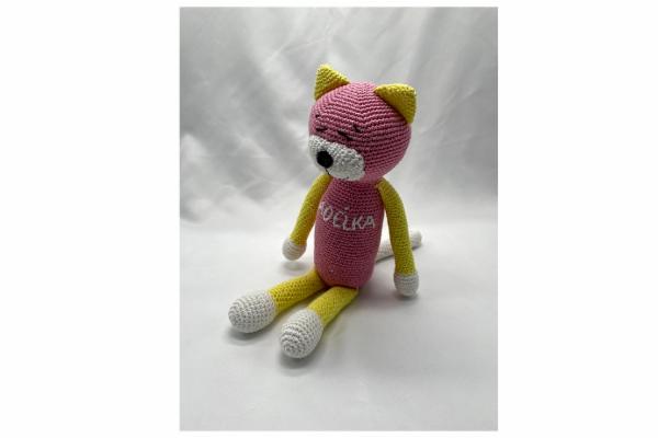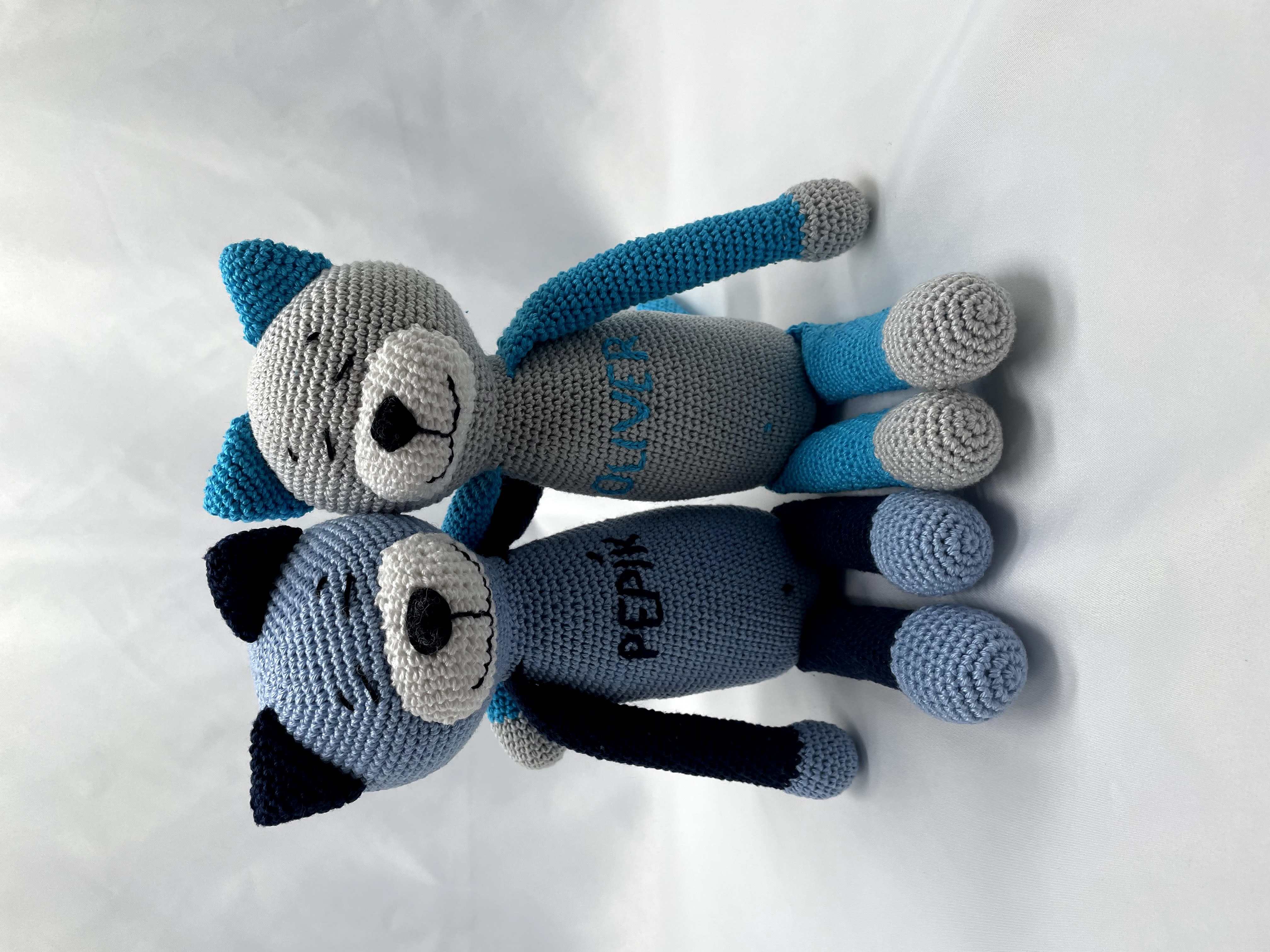 Háčkuji převážně kočičky. Zkoušela jsem i jiná zvířátka, to ale není prioritou. Háčkuji hračky se jménem. Hračky jsou vhodné pro děti od narození. Vlna má certifikaci pro tyto nemluvňata. Tudíž svojí kočičku mají od miminka a jde s nimi dál a dál. A ve školce se jim už neztratí. Kočičky mohou být různých barev, s chrastítkem či bez. Barevná škála je velmi široká. Jsem schopna i ochotná uháčkovat kočičku podle barev v postýlce či podle fotografie reálné kočičky. Fantazii se meze nekladou. To vědí už i děti. :) Zatím je to v plenkách, ale až by se projekt rozběhl, upgrade jako kočička s batůžkem, oblečením a podobně nebude výjimkou. Nápadů je spousta.