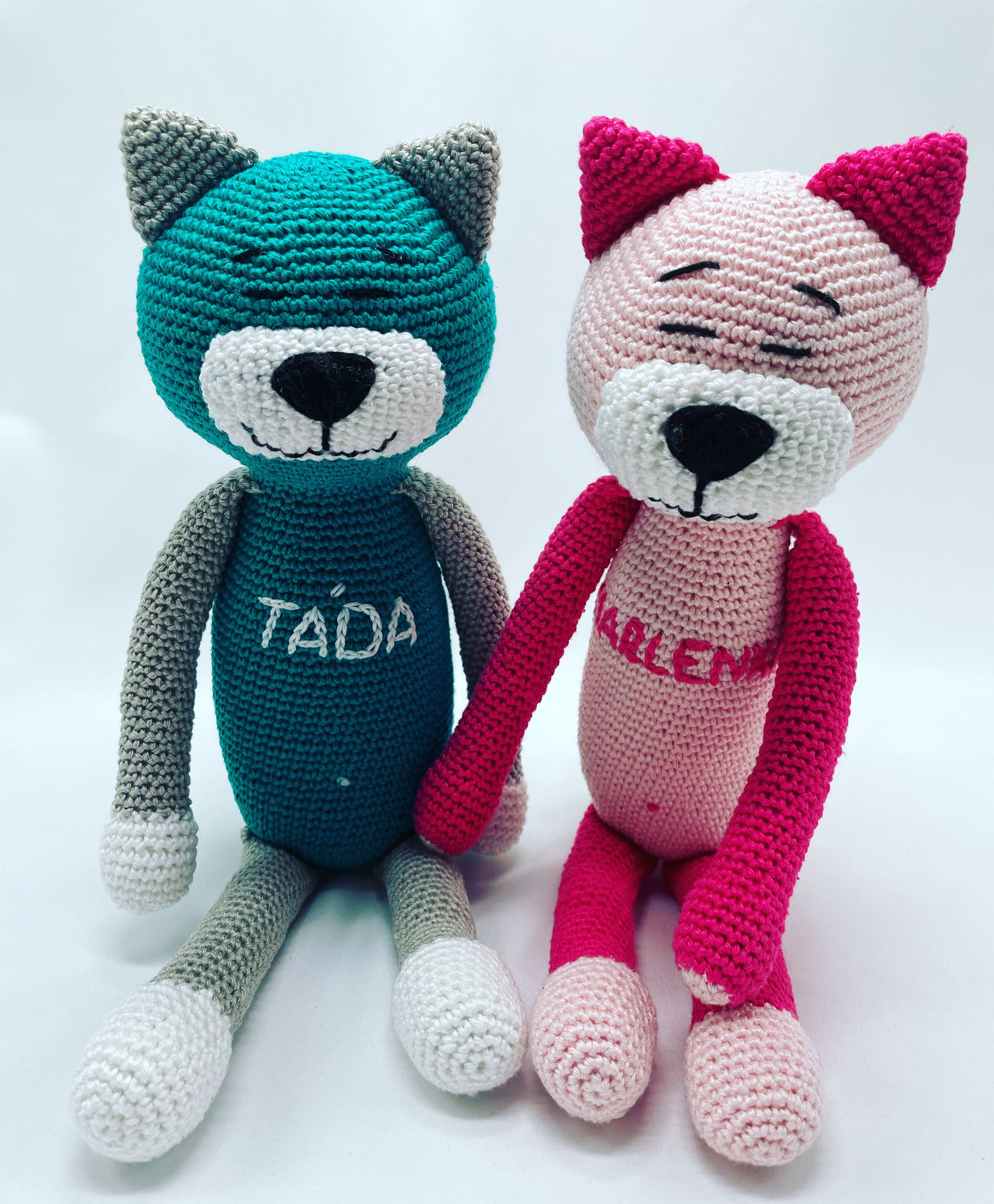 Jsem učitelka v mateřské škole. Velkým problémem ve školce jsou věci dětí nebo nikoho. Zkrátka se věci záhadně objevily. Asi vítr. Děti si nepoznají ani tričko, které zrovna sundaly. Vtipné je, že oblečení poznávám podle vůně aviváže. Ale co hračky? Na spinkání si děti nosí své plyšáčky. Napadlo mě, že ideální by bylo, kdyby je také měly podepsané. A tak vznikl doplněk se jménem. To je ta jedinečnost a originalita těchto kočiček. A nejlepší na tom je, že mě to baví.