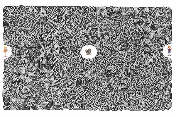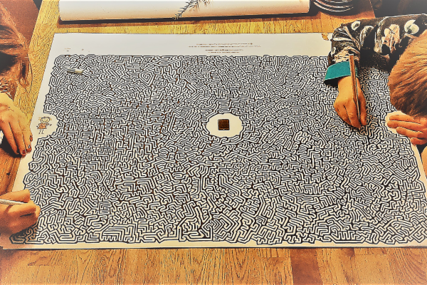 Vytvořit bludiště, včetně všech úprav zabere zhruba 30 hodin čistého času. Bludiště jsou upravena v grafickém programu a vytištěna na velkoformátových tiskárnách.