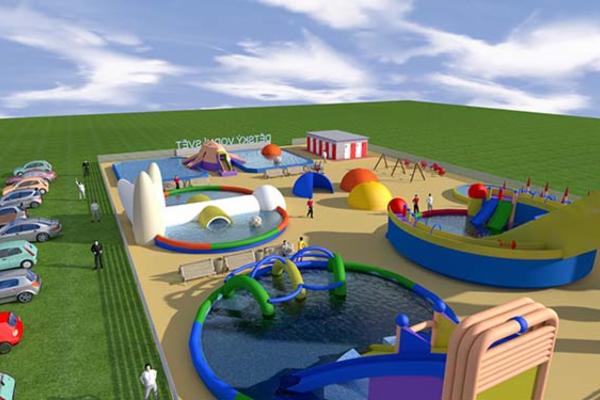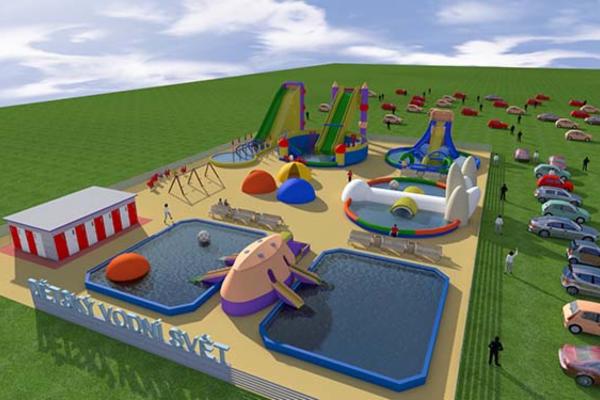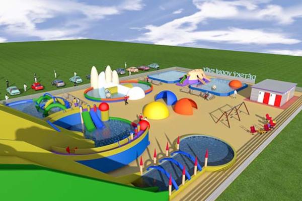 První nafukovací hrad se postavil na Ředhošti na tržnici pana Tošila. Ten nám tedy vchází do příběhu a oba pánové se zamýšlí, že na obrovské ploše trhů, kde lidé s dětmi chodí od stánku ke stánku, a malým capartům se to opravdu vůbec nelíbí, postaví něco pro zábavu. Děti doslova okupují skákací hrad. Ale má to chybu. Vyjde sluníčko a dětem je velké vedro. Rodiče navrhují alespoň hadici a občas děti pokropit. Docela nekomfortní, že? Trochu zamyšlení a celý nápad je na světě. V srpnu 2021 přišla odvážná myšlenka. Dětský vodní svět. Kontakty na ohromné nafukovací sestavy jsou v telefonu a projekt vznikl za necelý rok. Nyní, tedy v roce 2022, se vodní svět otevře. Bude se rozvíjet a modernizovat podle potřeb návštěvníků, které již nyní tato atrakce zajímá, těší se na ni, a někteří se už ptali na předprodej. Ale vraťme se k příběhu. Z původního záměru vytvořit hezkou oslavu pro syna je dneska projekt pro všechny děti.