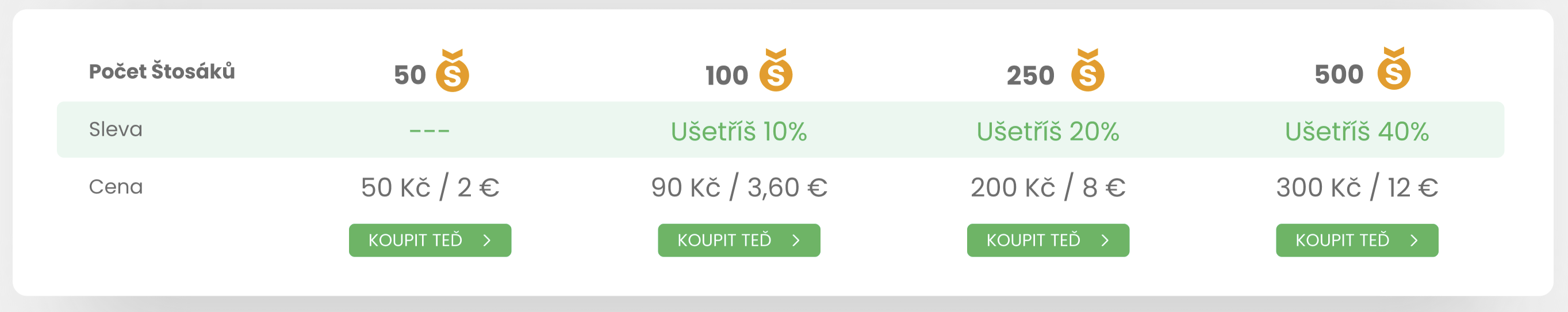Předplatné půjde platit pomocí interních kreditů, tzv. Štosáků, které si budete moci koupit v těchto balíčcích.