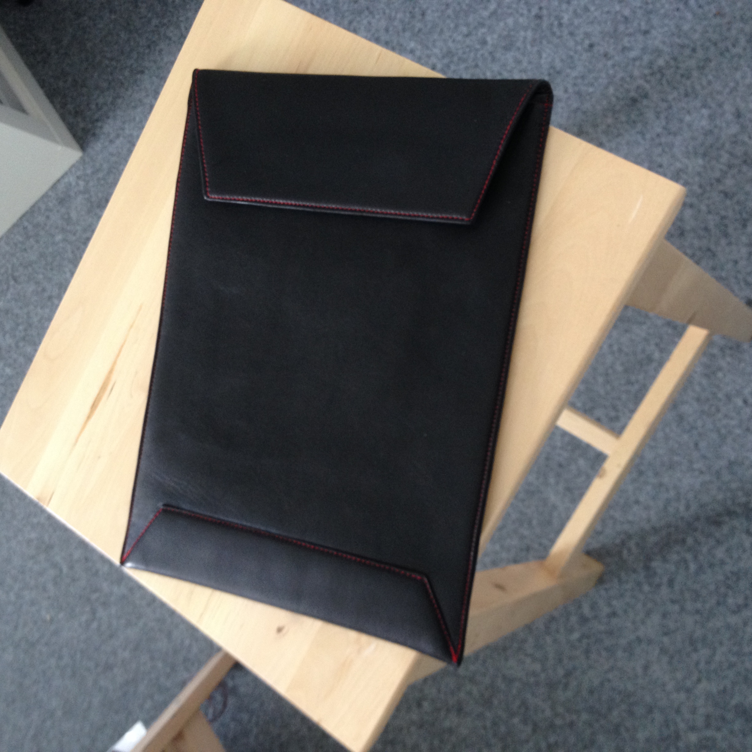 Nosnou část obalu tvoří plstěný materiál, který je potažen ovčí kůží z ostrova Jáva z Indonésie. Kůže je ručně natřena a sešita brašnářem z Bali. Obaly jsou ideální na ochranu jablečných počítačů a tabletů. Zapínání je na suchý zip.