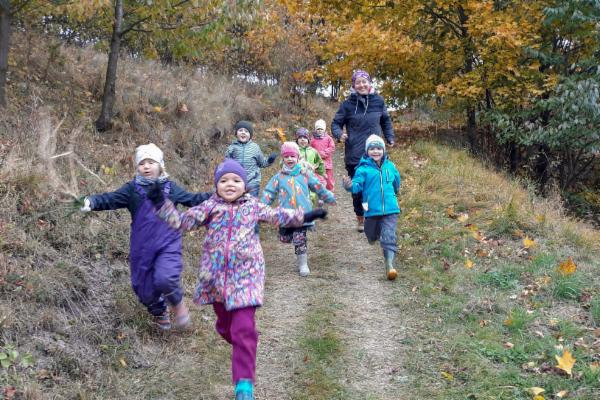 Jsme věkově smíšenou třídou, s maximální kapacitou 13 dětí, která funguje ve specifickém režimu lesní pedagogiky. Snažíme se o maximální otevřenost rodičům a sourozencům - jsou vždy vítáni, rádi je zapojíme do našeho programu a velmi uvítáme jejich nápady. Třídu vede paní učitelka Peťa a k ruce má asistentku Zuzku (autorka projektu). Spojuje nás láska k přírodě a návrat ke kořenům, který v dnešní zrychlené době potřebujeme. Snažíme se vést děti k úctě ke svému okolí i sobě samým. Program ve třídě Kamínci je utvářen slavnostmi spojenými s přirozeným rytmem roku a čtyřmi ročními obdobími v propojení s hlavním tématem – PŘÍRODA. V přírodě máme svá oblíbené místa (např. u tůňky, u starého dubu, u posedů, pak pastvinu s vyhlídkou na Vésku a pastvinu s vyhlídkou na Fulnek). Děti tak mají možnost vnímat přirozené proměny prostředí. Většinu času trávíme venku, na zahradě v altánu a na procházkách. Skrze přímé pozorování přírody a jejich proměn jsou zařazeny naučné experimenty a praktické činnosti s použitím materiálu z přírody. Rodiče se k nám rádi přidávají a podílejí na různých akcích a zahradních slavnostech, které MŠ pořádá. Všichni společně na zahradě sázíme nové stromy, keře a květiny. Tátové pomáhají s budováním a opravami vybavení, jako jsou zahradní kuchyňky pro děti, kompost nebo ohniště, kde společně opékáme dobroty.
