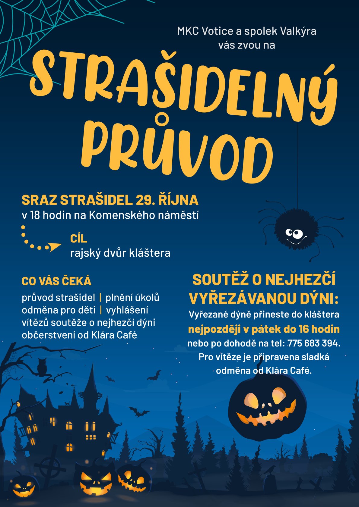 Dne 29.10. od 18:00 hod město Votice pořádá akci s názvem Strašidelný průvod městem, který bude zakončen ve zdejším klášteře. Na děti zde čeká soutěž a malá odměna pro výherce.