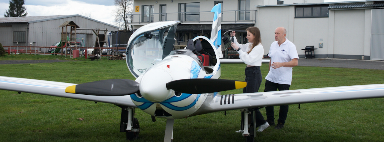 Letadlo, se kterým se Jiří a Eliška rekord dosáhli, se jmenuje Shark (Žralok) a jako takový opravdu vypadá. Je vyrobený na Slovensku a celosvětově je to jedno z nejrychlejších letadel své kategorie. Je zvláštní také tím, že v něm posádka nesedí vedle sebe, ale za sebou jako ve vojenské stíhačce. To jej činí také aerodynamičtějším a snižuje jeho spotřebu.