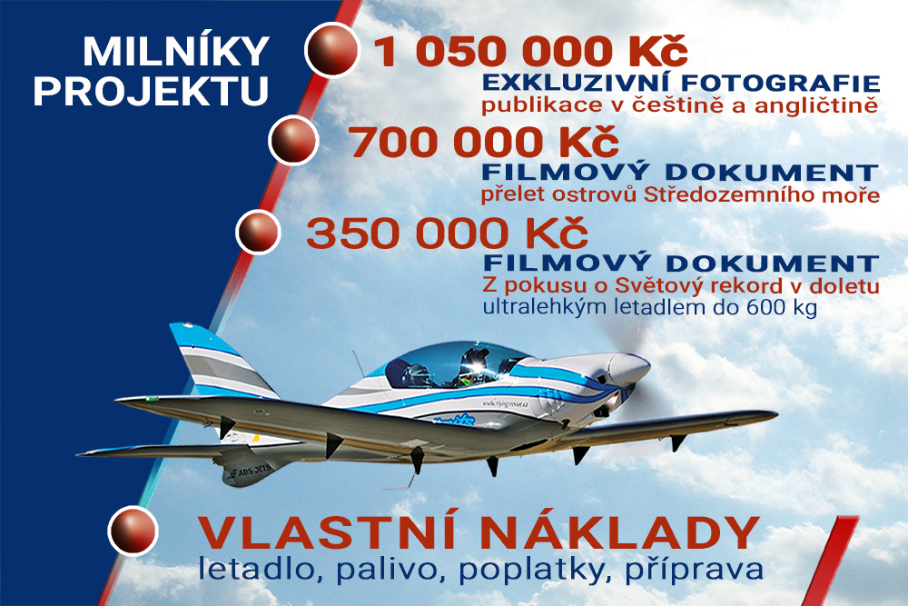 Tentokrát bych rád s vaší podporou vytvořil dokument o Jiřího překonání světového rekordu v délce letu bez mezipřistání letadlem do váhy 600 kg. K přísným podmínkám pro uznání rekordu patří i přítomnost spolucestujícího v kabině. Jirku proto doprovázela jedna z nejmladších pilotek v Česku - Eliška Kudějová.