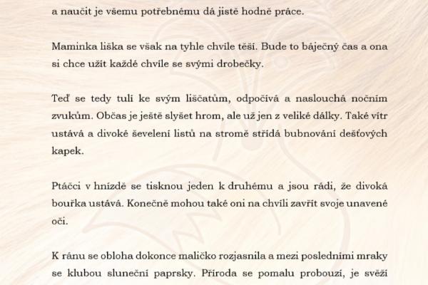 Když jsem v roce 2020 dostala při křtu své první knihy pro děti od jedné víly sudičky plyšovou lišku, hned jsem věděla, že o ní napíšu další knížku. Chvíli to sice trvalo, ale jak se říká: „Kdo si počká, ten se dočká.“ A my se brzy dočkáme:-).