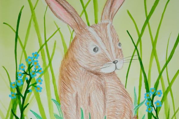 Základ obrázků kreslených pastelkami dotváří pozadí malované vodovými barvami. Obálku jsem opět vytvořila pomocí anilinových barviček a drobných krystalků soli - stejně jako u mých předchozích knih.