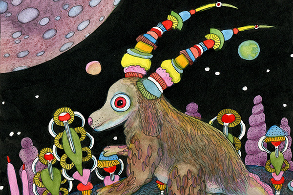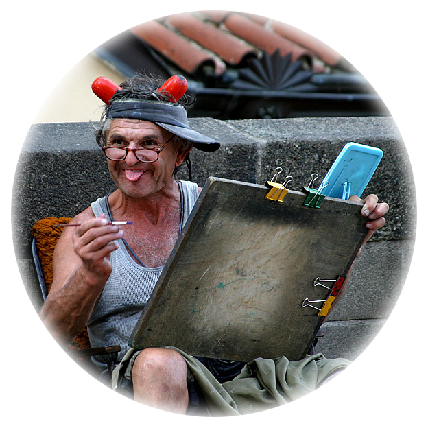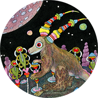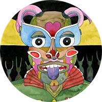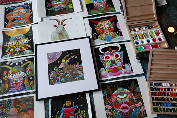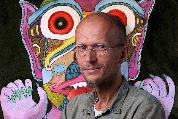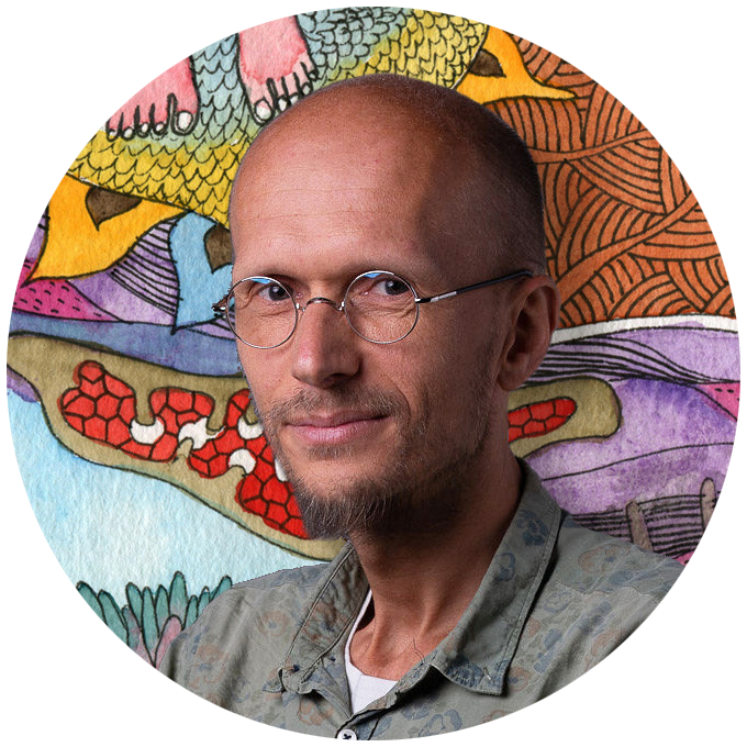 Jsem umělec na volné noze, prozkoumávám odlehlá zákoutí akvarelových světů, věnuju se hudbě, ilustracím a vydavatelským činnostem. Ve svých obrazech často zabloudím na jiné planety, do jiných, paralelních vesmírů, nechávám se vést technikou automatické kresby. Právě tímto způsobem se pod mýma rukama narodili téměř všichni „čerti", které jsem pro kapesní atlas čertů namaloval.