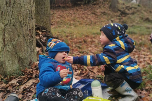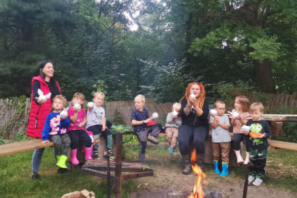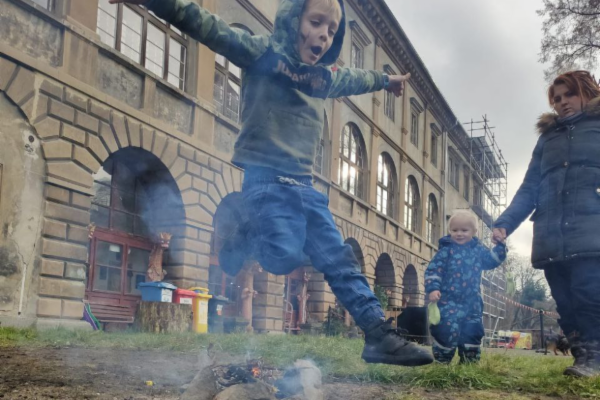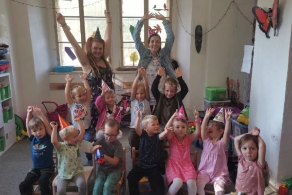 „S myšlenkou školky jsem si prohrávala už krátce po narození staršího syna, ale přišlo mi naprosto nereálné něco takového dokázat a školku zřídit. Když syn povyrostl a narodil se druhý, začaly jsme se pravidelně scházet s kamarádkou a jejími dětmi. Žádné z našich dětí nikdy nechodilo do školky a nám přišlo jako dobrý nápad jim dopřát nějaké vzdělávací aktivity a nabízet i další činnosti, než volnou hru. Především to začalo u deskových a karetních her, když děti projevily zájem o více informací o pirátech, žábách a vlastně všem co se ve hrách vyskytovalo. A tak vznikly třikrát v týdnu projektové dny, vždy na nějaké téma o které kluci projevili zájem. Všechny to moc bavilo a nám časem začaly přibývat další děti kamarádek. Jednoho dne jsem najednou seděla s deseti dětmi v našem dvoupokojovém bytě a přišlo uvědomění, že je asi čas na větší prostory. V tom nám byla seslána má letitá kamarádka Hanka, tou dobou manažerka nedalekého zámku, s nabídkou využívání prostor a zámeckého areálu. Slovo dalo slovo a o pár měsíců později jsme měli zapsaný spolek a přihlášky dalších dětí do naší školky.‟