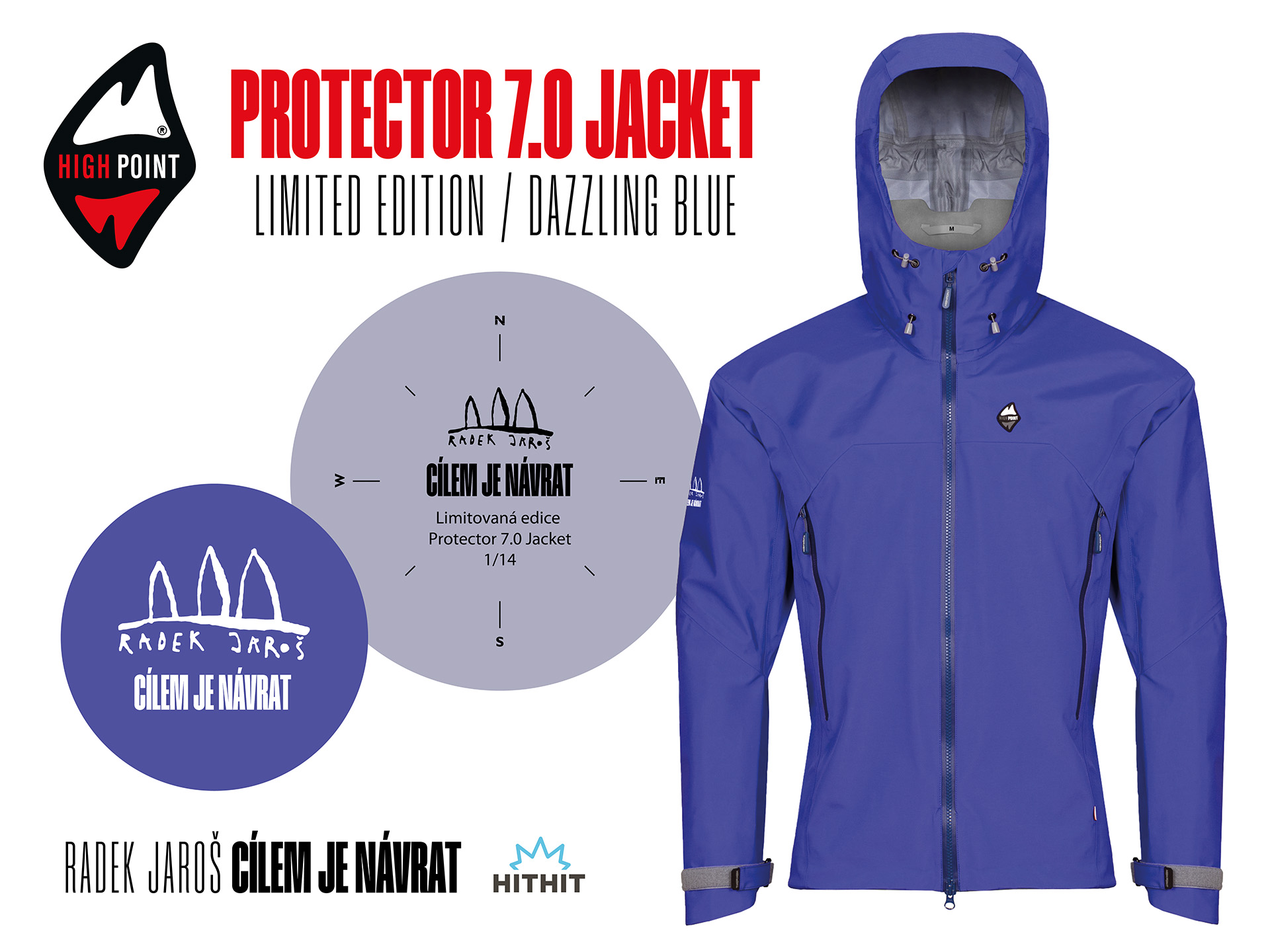 Další přidanou odměnou je limitovaná edice bundy High Point Protector 7.0, což je sedmá generace nejoblíbenější hardshellové nepromokavé bundy z dílny české firmy ze Šumavy. Kvalitní oblečení High Point provázelo a chránilo Radka na všech osmitisícových vrcholech i na nejvyšších vrcholech všech světadílů! Bunda High Point Protector 7.0 v edici CÍLEM JE NÁVRAT bude vyráběna „na míru“, ve velikosti pro konkrétního přispěvatele. Bude v barevném provedení „dazzling blue“ s filmovým logem „RADEK JAROŠ – CÍLEM JE NÁVRAT“ a speciálním motivem s označením limitované edice uvnitř.