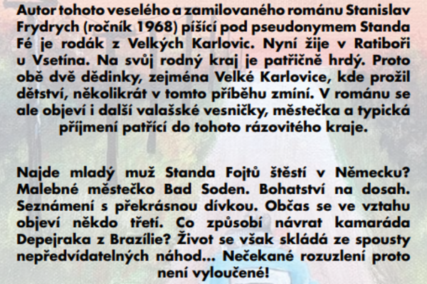 Hlavní hrdina tohoto veselého románu, mladý muž Standa Fojtů, není spokojený se svým dosavadním životem a proto odcestuje do Německa. Do plánovaného Frankfurtu ovšem nedorazí, protože se mu po cestě porouchá auto. Nový domov a práci tak najde v malém malebném lázeňském městečku Bad Soden, kde se seznámí s překrásnou dívkou. Štěstí se na Standu usměje i v podobě nového kamaráda, kterému pro jeho velkou jizvu na tváři říká Depejrak. Ten ale musí záhy odcestovat do Brazílie. Dívka jménem Marie žije sama, finančně je nadstandartně zajištěná, Standa ji několikrát navštíví a i když mluví rozdílnými jazyky, tak si velice rozumí. Oba se do sebe zamilují. Hlavnímu hrdinovi se tak splní to, co si vždy přál: mít sympatickou dívku, krásné bydlení a být bohatý. Je to však přesně to, co chtěl? A co přinese do tohoto vztahu návrat Depejraka z Brazílie?