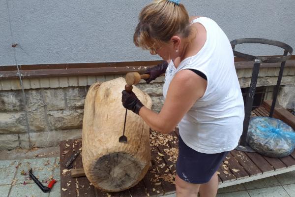 Zajímavostí je že plastika "Květ" (na úvodní fotce) vzniká z kmene lípy, jež rostla na Vyšehradě na chodníku u hřbitova a musela být pokácena. Zhruba 15 let jsem kolem ní chodila v ateliéru a čas od času vyvstávala otázka v co ji přetvořit. Když jsem byla pozvaná jako host na tuto výstavu s přírodní tématikou, kmen lípy svým tvarem mi okamžitě evokoval představu velkého květu na kterém nyní pracuji.