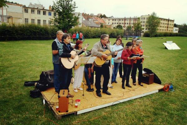 Když se povedla navázat spolupráce s občanským sdružením Vrátka o.s., nemohl nám nikdo zabránit akci na louce zrealizovat. Minulý rok kavárna s každodenním programem fungovala týden a těšila se až nečekaně pozitivní odezvě. To nás motivovalo naplánovat letos kavárnu "Na louce" na 3 týdny a zapojit celou řadu zajímavých lidí i všelijakých skupin z Třebíče a okolí.