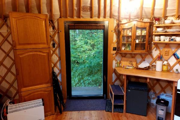 Představte si, že ležíte ve vaně s teplou vodou a díváte se z ní obrovským oknem na les, který začíná hned vedle jurty. Po těle se vám rozlévá blaho. Jednak za to může ta příjemně teplá voda, ale také vědomí, že jste součástí skupiny lidí, kteří investovali do toho, že je nová koupelna tak útulná a že se z ní dostanete dveřmi přímo do jurty. Už totiž není potřeba procházet venkem a je přímo propojená s jurtou. Rozhlédnete se a vidíte umyvadlo, záchod, krásná světla na stěnách dotvářející příjemnou atmosféru a i když je venku zrovna - 50 stupňů, vám je hezky. slyšíte něco cupitat po střeše. To nic, to jen veverka hledající oříšek, který si poblíž schovala na podzim. Letmo jste také zahlédly proběhnout srnku, kterých je tu mnoho.