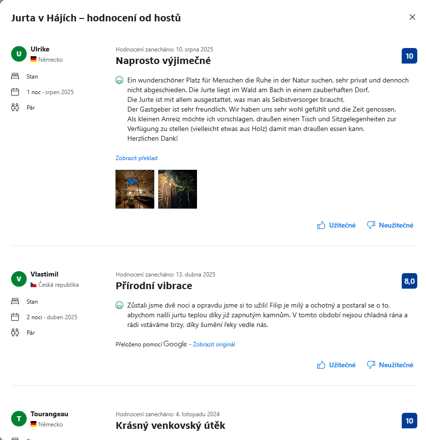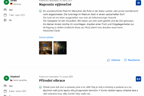 No jasně, už rok sem přijíždíte z nejrůznějších důvodů. Myslím, že stojí za to uvést některé recenze, více jich najdete v galerii nebo odkazech.