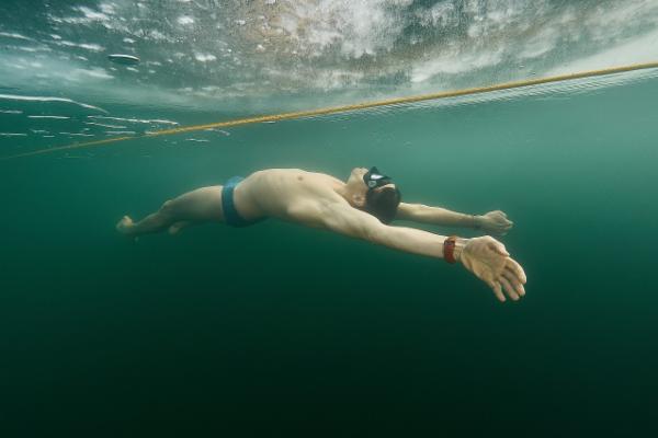 Možná si pamatujete fotografii, která získala ocenění Czech Press Photo – bruslař a freediver. Tehdy jsem pod ledem uplaval zhruba 20 metrů a v hlavě se mi poprvé objevila otázka, jestli by bylo možné zaplavat pod ledem mnohem dál. A hlavně – bez neoprenu.