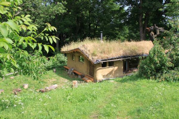 For these reasons we, the Brontosaurus Movement, are now building small houses made of natural materials and reusable waste inside a former ammunition depot, the one with the code name 104. They are built by volunteers, Czech as well as international, and once finished they will serve all people of goodwill – youth, volunteers and maybe even you...