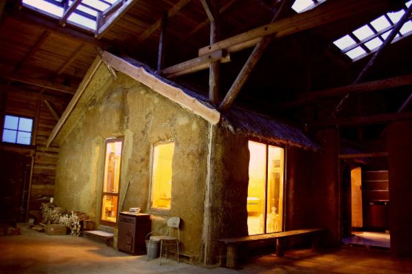 I proto upravujeme jeden z bývalých skladů, tzv. „Sto čtyřku“, cestou přírodního stavitelství – z balíků slámy, hlíny, ze starých palet a různých stavebních zbytků. Vznikají zde tak roztomilé „domečky ve velkém domě“ připravené k užívání lidem dobré vůle – pro neziskovky, dobrovolníky, kteří je staví, a třeba i pro vás…
