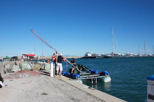 Naložili jsme to se sponzorem na vozík a vydali se hrdinně směr Itálie. Když jsme natěšení dorazili na pláž a začli loď sestavovat, vyhnala nás místní policie s odůvodněním, že vyvážet odpadky na pláž je přísně zakázáno. To nás však nenechalo odradit, loď jsme odvezli na malou zátoku za Piombinem a v industriálním zátiší jsme loď úspěšně zkompletovali. Ještě ten samý večer jsem se vydal s doprovodnou lodí na Korsiku. Vlny o výšce 2-3 metry vypadají na 3 metrovém katamaránu z pet flašek docela hrůzostrašně. Byla to chvíle, která měla prověřit jestli to myslím opravdu vážně. Chvíle, kdy je potřeba se rozhodnout, jestli zůstat v bezpečí představ a snění, nebo se rozhodnout riskovat život a utkat se s realitou. Naštěstí tehdy vyhrála odvaha nad strachem a jsem rád, že jsem tenkrát alespoň mentálně zvítězil. Na Korsiku mě však pro jistotu doprovodila půjčená plachetnice, aby mě měl případně kdo vytahovat z vody. Po zhodnocení, že Vichr II. je schopen se nad vodou při troše štěstí udržet, se doprovodná plachetnice vydala zpátky do Itálie. Brzo na to, co odplula, motor začal stávkovat. Naštěstí se objevil technik, který mi byl ochotný s opravou motoru pomoct. V přístovu Macinaggio jsem strávil 2 dny laděním detailů na motoru i na lodi. Příjemným překvapením bylo, jak se chodili místní seznamovat. Občas donesli nějaké to jídlo, abych nestrádal a sem tam i pár eur.
