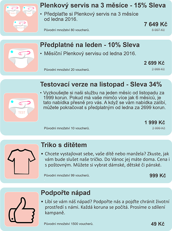 Představte si, že z klidu domova za pár okamžiků objednáte látkové plenky, které jsou šetrnější k přírodě, zdravější pro vaše mimčo a to nejlepší, můžete s nimi zacházet jako s plenami jednorázovými. Navíc, fronty u pokladen nebo přenášení objemných balení budou pro vás minulostí. Stylové, šik plenky třikrát týdně přivezeme a ve stejnou chvíli vás zbavíme těch použitých. Nemusíte prát ani vyvařovat, na špinavou práci jsme tady my. Ušetřený čas můžete strávit v blízkosti vašich nejmilejších a zároveň pomáháte budovat kvalitnější životní prostředí a lepší podmínky pro život vašich potomků.