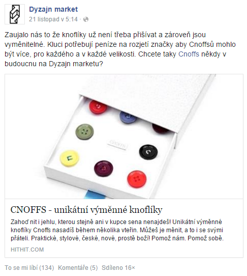 Děkujeme Dyzajn marketu za podporu, pokud nás chcete vidět třeba už v lednu na pražském projektu #minidyzajn, neváhejte a odměňte se, jako to udělalo již 111 lidí před vámi! ;)