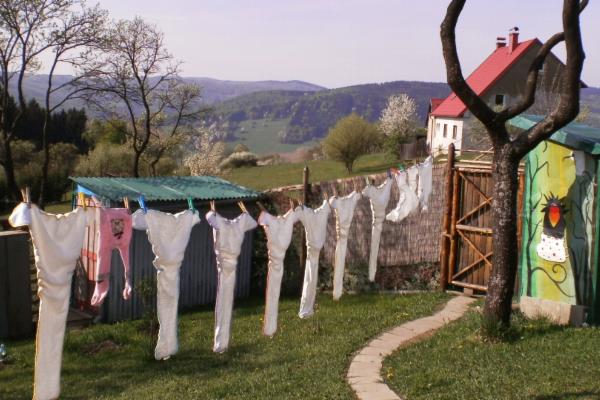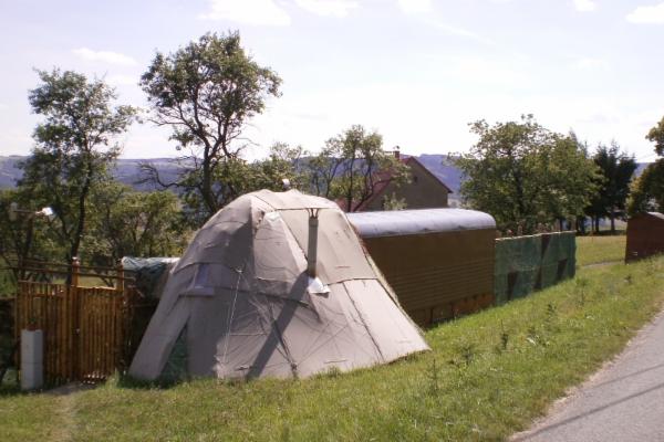 Jsme tříčlenná rodina (Lenka 25, Libor 40, Eliška 1) a už tři roky obýváme svépomocí zrekonstruovanou maringotku v nádherném koutě moravských Kopanic, na Žítkové, opředené rozličnými pověstmi o tajemné síle místních moudrých žen-léčitelek ("bohyní"). Fungujeme tady na kopci jako takové malé útočiště pro pocestné, turisty, přátelé... pro všechny, kteří chtějí strávit pár chvil v klidu pod starou lípou, u šálku dobré kávy/čaje, popovídat si o životě bez zavedené teplé vody, sprchy a splachovacího záchoda, o životě ve svobodě a radosti, větší zodpovědnosti a samostatnosti, nebo pro ty, kteří také chtějí začít bydlet jinak, nízkonákladově, bez placení nájmů.