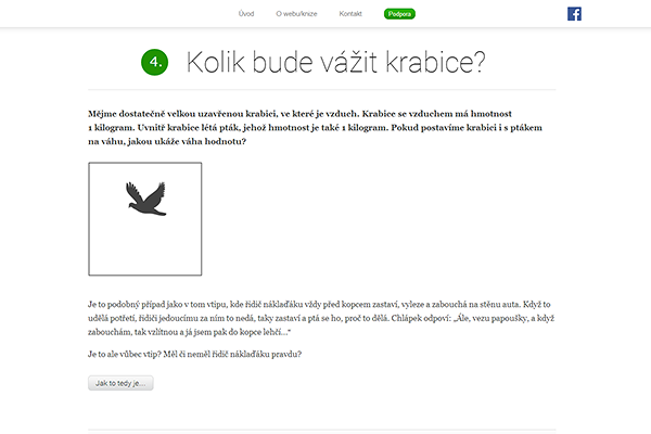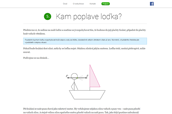 I když to bude znít trochu pesimisticky, tak to začalo nespokojeností. Nespokojeností se současným stavem výuky fyziky, se současným vnímáním fyziky. Nechci hledat viníky, nechci říkat, že za to může ten a ten, chci se pokusit zlepšit to, změnit to. Ukázat, že fyzika je zajimavá a fakt dost hezká věda, a že i bez leckdy umělého počítání se lze něco dozvědět a může Vás to zároveň skutečně bavit.