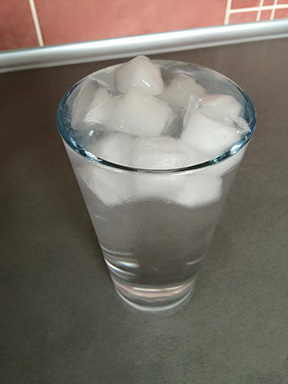 Podívejme se na následující fotku. Co se stane, až všechen led roztaje? Přeteče voda? Nepřeteče? Nebo hladina ve skleničce klesne?