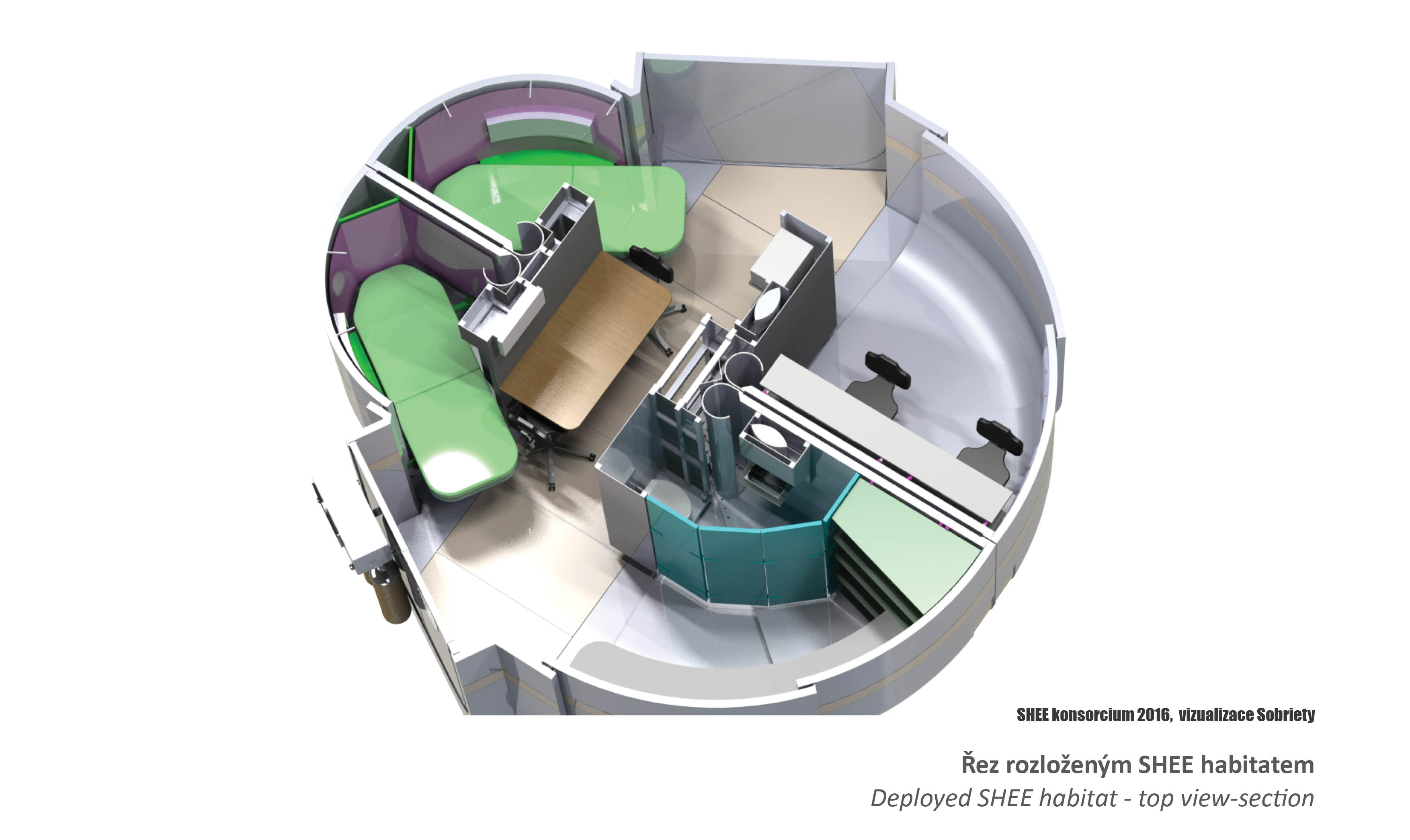 Rádi bychom ukázali simulátor kosmického obydlí S.H.E.E. široké veřejnosti poprvé v České republice. Tento unikátní prototyp bude k vidění po dobu 2 měsíců ve Světě techniky v Ostravě a poté na Dnech NATO. Pomozte nám společně s expozicí S.H.E.E. u nás!