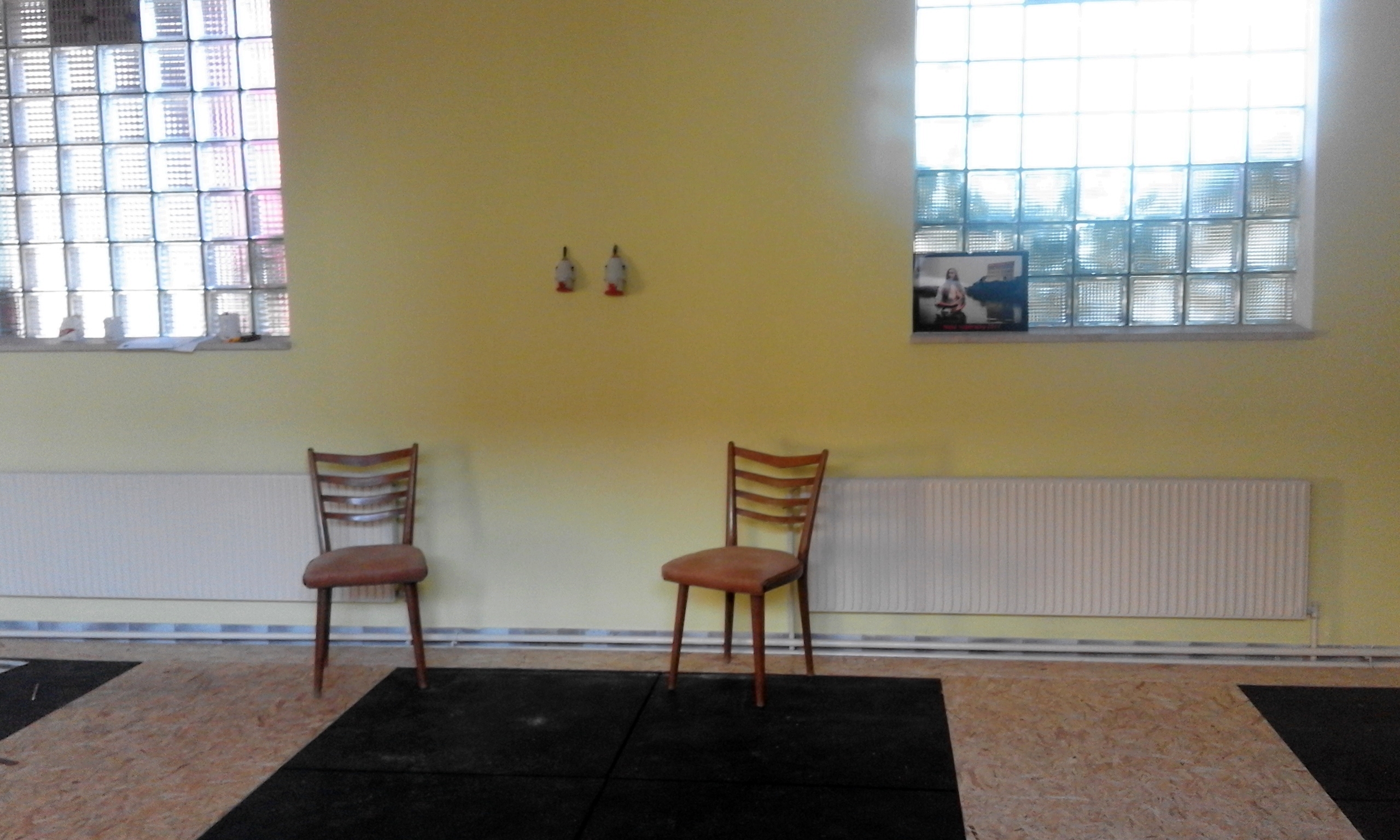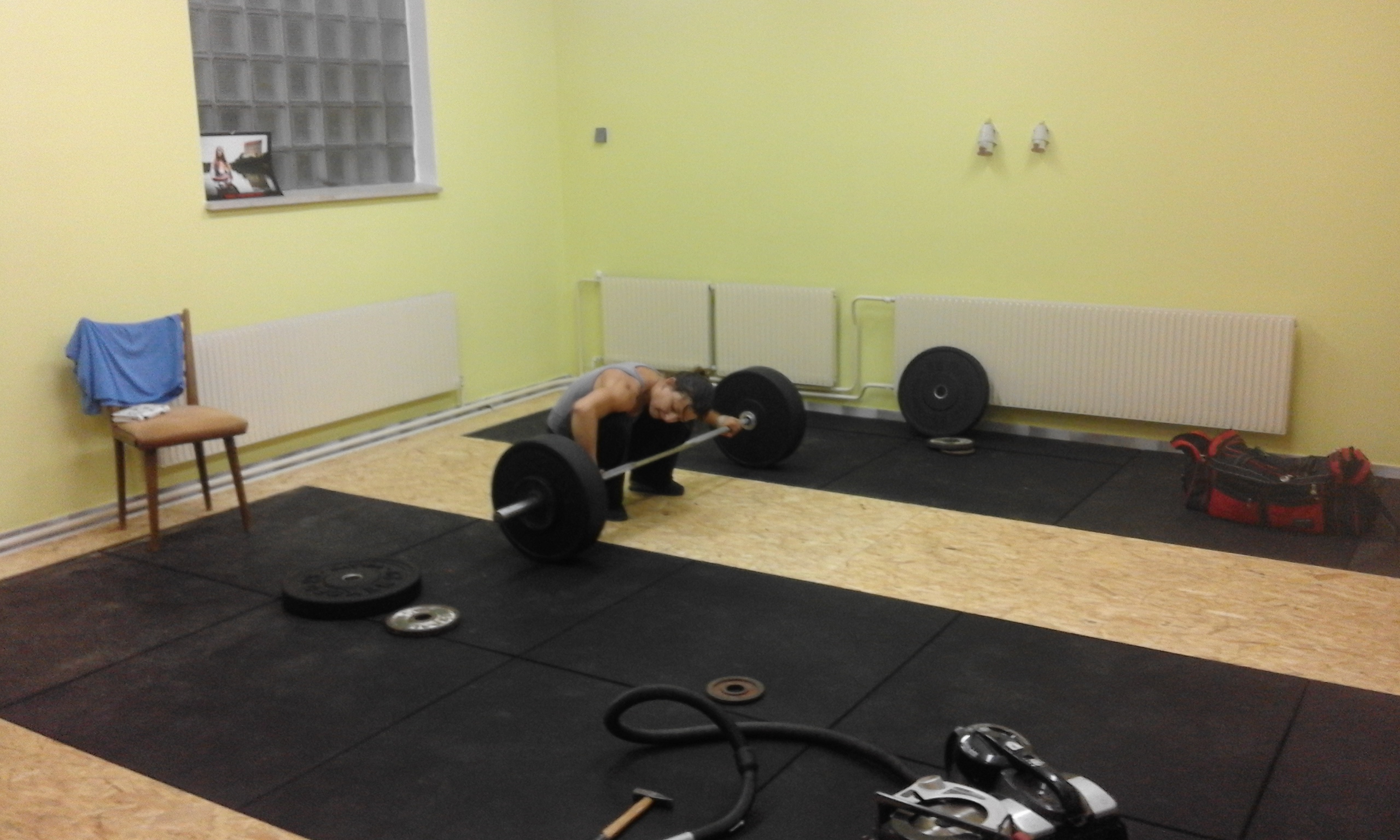 Minulý týden byl vzpírárnu na Hané navštívit reportér Petr Podroužek, a kromě rozhovoru se mnou udělal pár pěkných fotek vzpírárny. Žluté pozadí není úplně ideální, a zdi jsou stále k dispozici případnému sponzorovi. Věřím, že i později budou fotky ze vzpírárny v různých médiích, takže by to byla reklama i pro toho, kdo si zeď zabere pro sebe ;) Je možné i nechat nasprejovat celou zeď, pokud se se sponzorem dohodneme na celkovém vzhledu.