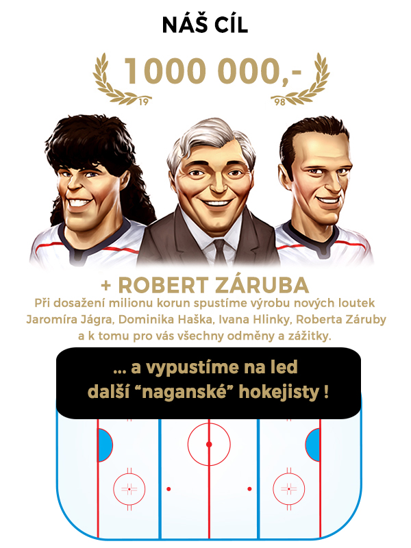 Připravujeme celovečerní animovaný film inspirovaný největším historickým úspěchem českého hokeje a chceme tak znovu otevřít zlatou bránu "Turnaje století". Výroba celovečerního animovaného filmu je náročná, a to jak časově, tak i finančně. A proto bychom vás chtěli požádat o vaši podporu. Pomozte nám s výrobou nových loutek českého hokejového týmu z Nagana a třeba získejte svou vysněnou roli v tomto filmu! Ehm, teda vaše loutka.