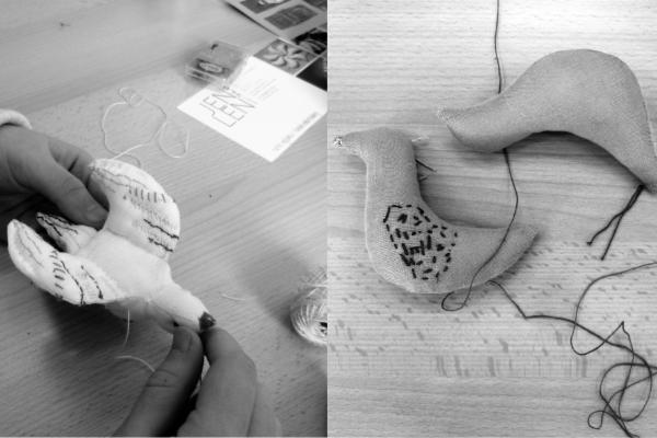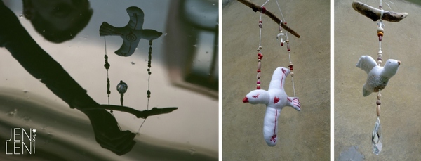 Workshop / dílna - větrohra s ručně vyšívaným ptáčkem: