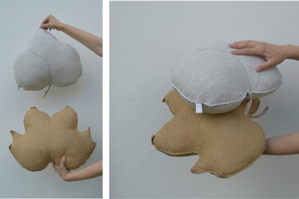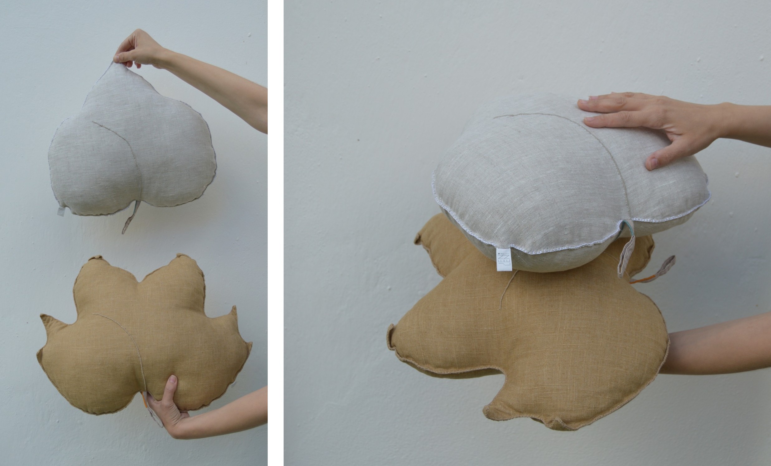 Lněné polštáře ve tvaru listů lípy, gingka, jitrocele nebo liliovníku (rozměr cca 40 - 50 cm):
