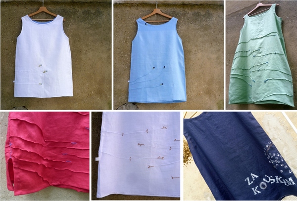 Lněné krátké šaty nebo tunika, s prošíváním, výšivkoua nebo i s tiskem (na Vaše přání):
