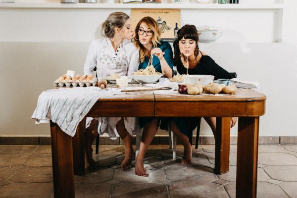 Je nás moc, každý lektor, který s námi chce navázat spolupráci, je totiž tak trochu náš. A každý další amatérský kuchtík, který k nám někdy zavítá je taky trochu náš. Ale teď než to všechno vypukne jsme vlastně hlavně tři. Eva, ta co se zakousla do jablka a nebála se svoji vizi přenést na papír a navrhnout Food Porn Academy, Maruška, ta co teď běhá do lesa pro jahody mráz nemráz a Evinu vizi pomáhá rozjet a Jitřenka, co krom kokrhání řídí také marketingovou kampaň.