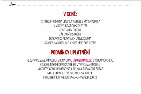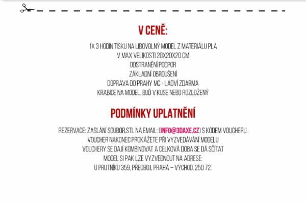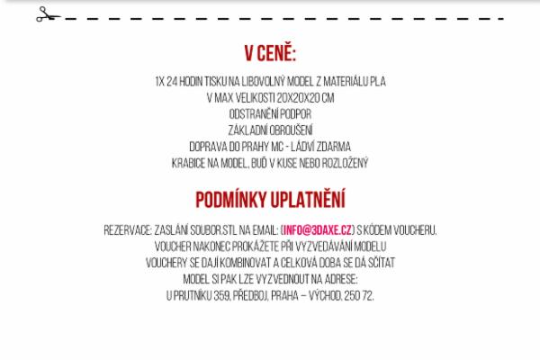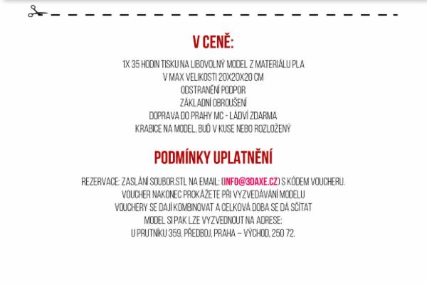 Děkujeme Všem, kteří se nás nebáli podpořit, ale s lítostí vám oznamujeme, že naše kampaň cíle nedosáhne. Pro ty z vás co opravdu mají o 3D tisk zájem. na Facebokové stránce: 3Daxe a i na webových stránkách 3Daxe.cz přijímáme první objednávky a tisknout začneme od 1.2.2017. Je nám líto, že Voucher…